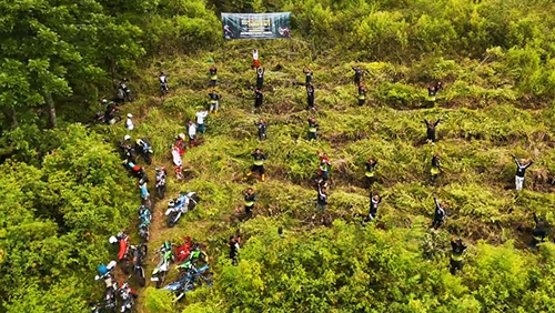 Muklisin, Administratur/Kepala Perhutani KPH Banyuwangi Barat (tengah) usai gelar adventure trial dibalut aksi penanaman pohon bersama Dagelan MX. (Foto: Istimewa)