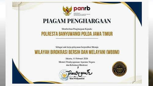 "Penghargaan ini menjadi bukti nyata komitmen, integritas, serta kerja keras seluruh personel dalam mewujudkan pelayanan publik yang profesional transparan, dan akuntabel," kata Kapolresta Banyuwangi, Kombes Pol Dr. Rofiq Ripto Himawan, Kamis (12/2/2026).
