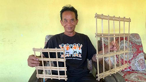 Sarino tunjukkan ancak setengah jadi saat ditemui di